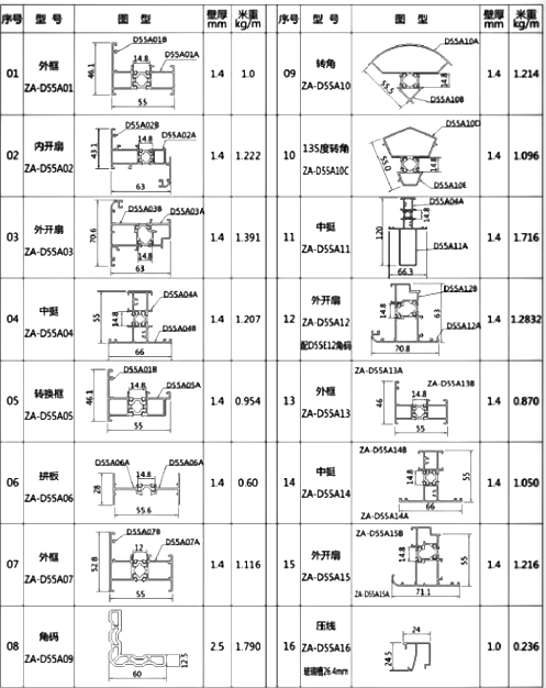 D55A隔热平开窗